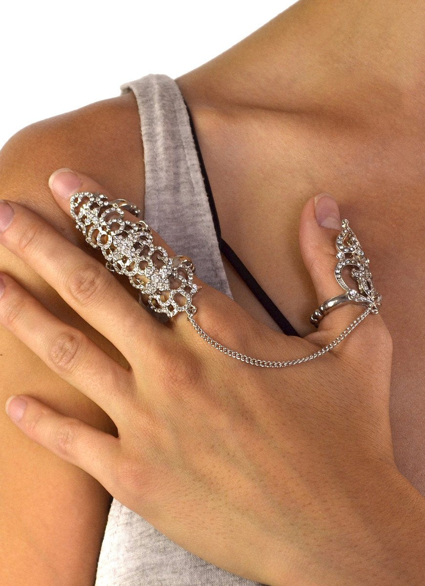 Crystal Filigree Chain Linked Knuckle Ring